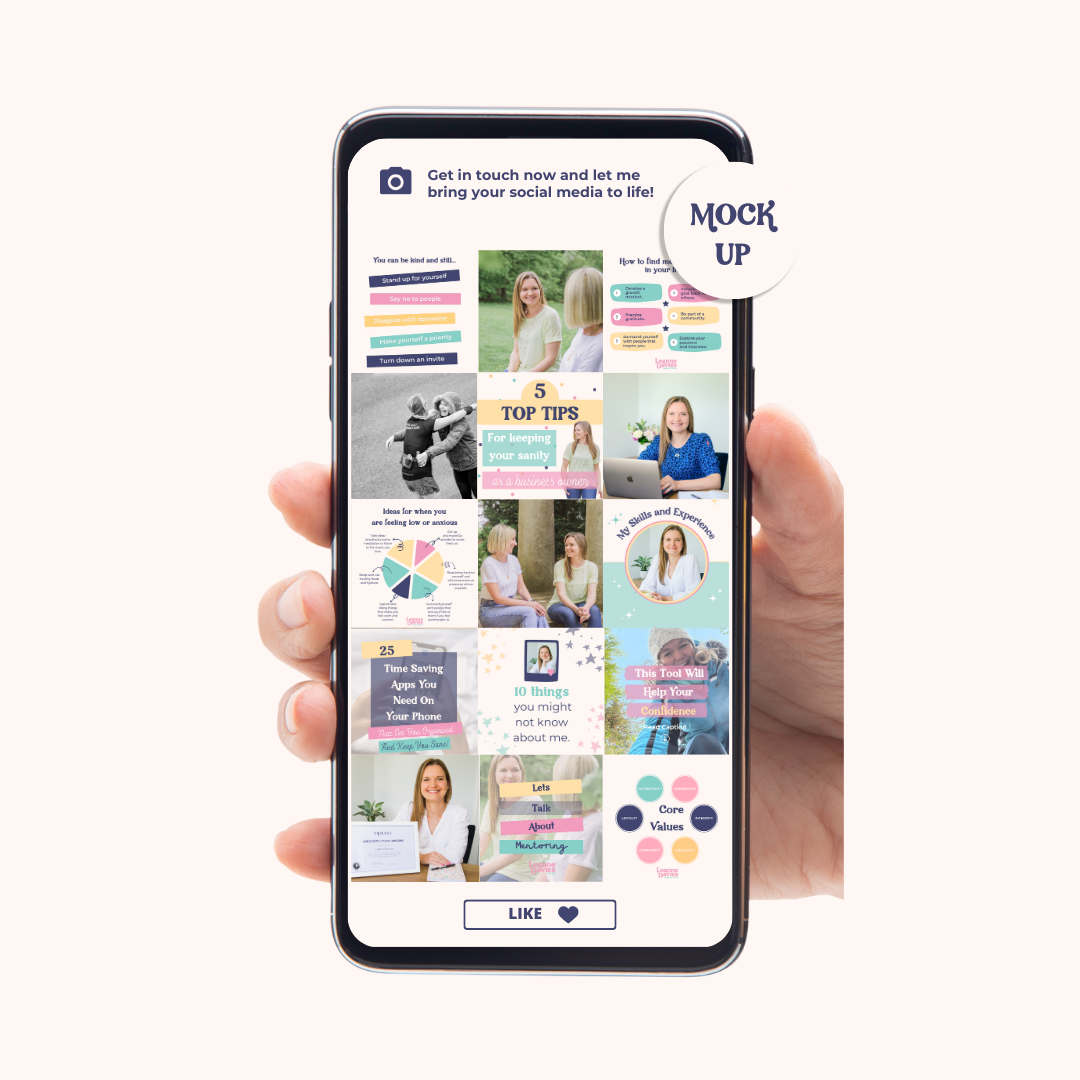 Helping you and your brand become visible on social media. Offering ‘Done for You’ social media graphics and digital marketing assets to ensure your content stands out online. Adding that layer of professionalism, elevating your personal brand and ensuring you start attracting your ideal clients.